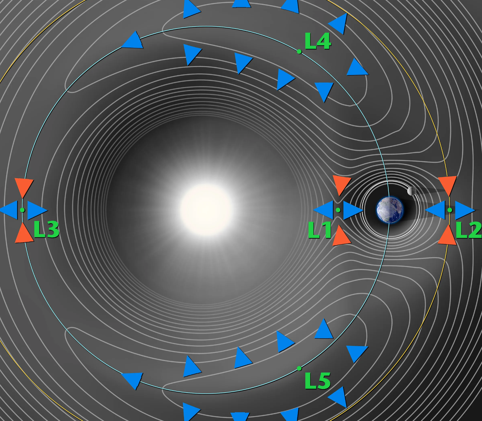 Lagrange Points of the Sun-Earth-Moon System. Courtesy: NASA