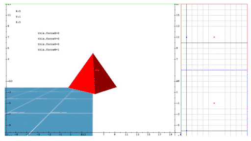 Laplass is capable of rendering 3D scenes using ThreeJS. Laplass allows importing 3D models, and then by the use of GameObjects one can assign behavior and render them. The XY and XZ views are work in progress, but they are supposed to display force vectors and object positions at all times.