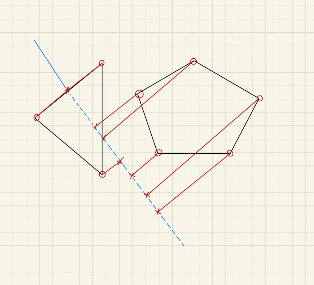 In our case, there was at least one no-overlap, so there is no collision according to SAT.