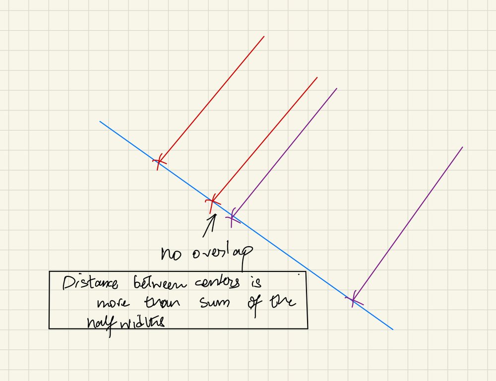 The Distance Between Their Centers is less than the Sum of the Halfwidths of the two primitives.