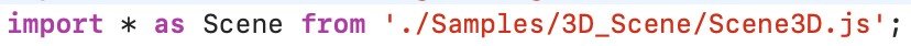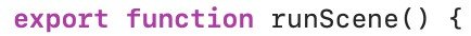 Next, we write the scene file. A scene file needs to import Engine.js and YourObject.js. yourObject.js is a file that you make for the GameObject you want to add to the scene. Engine.js gives you access to the functions it provides so you can tell it what to do. Every scene file needs to have the runScene() function defined.